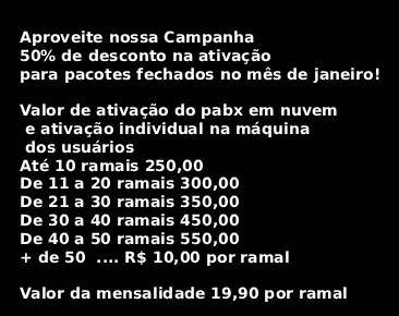 Instalação R$ 250,00 para sistema com 30 ramais.